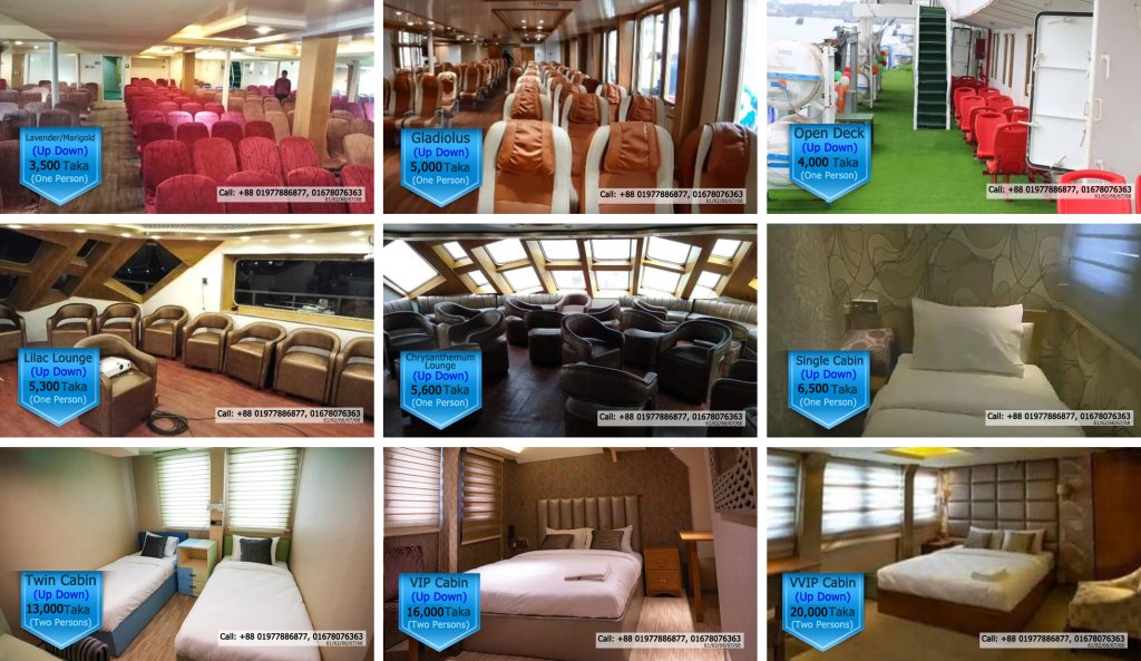VVIP Cabin (Deck A – 6th Floor) | 28,000 | 14,500 |